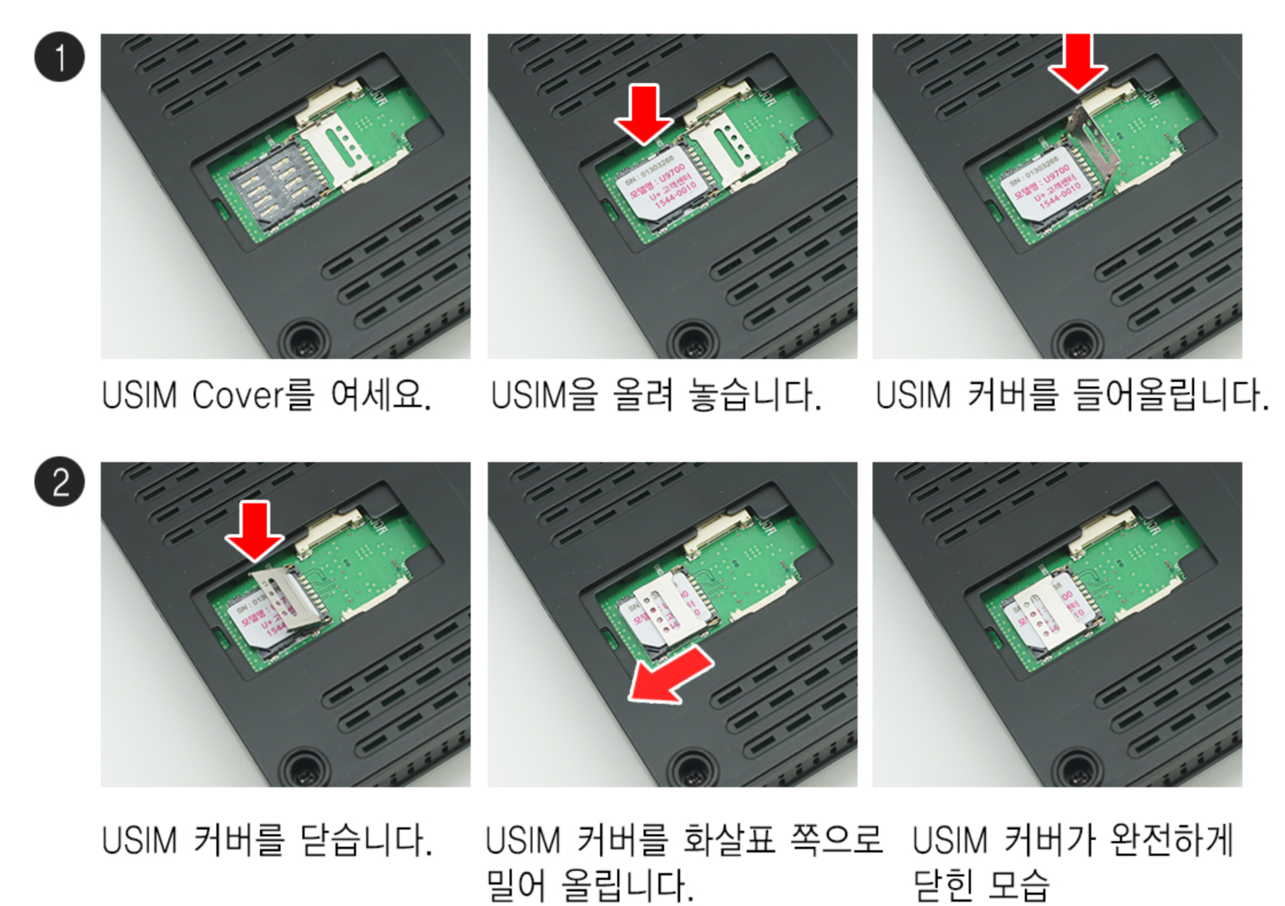 유심은 아래와 같이 커버를 열고 유심의 정보가 위를 바라보도록 한후 커버를 눌러주시면 장착완료입니다.