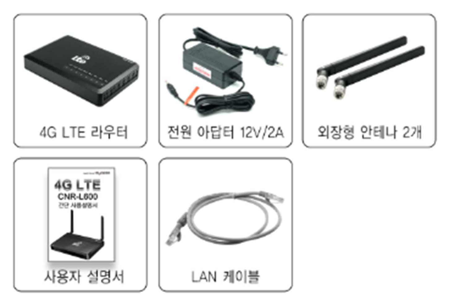 | 제품구성 | Standard Packing | LTE Router, Power Adaptor, Ethernet Cable, Manual |