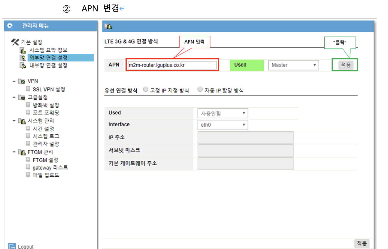 퓨쳐 ict사의 LTE 라우터 제품의 세팅 UI접속 매뉴얼입니다.