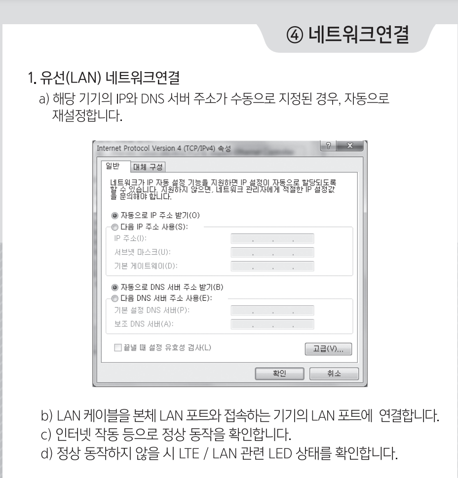 외부 통신망을 접속하여 운영이 가능한 상태에서 내부 사설 아이피를 자동으로 세팅되어 동시에 2가지의 장비에 사용이 가능합니다.